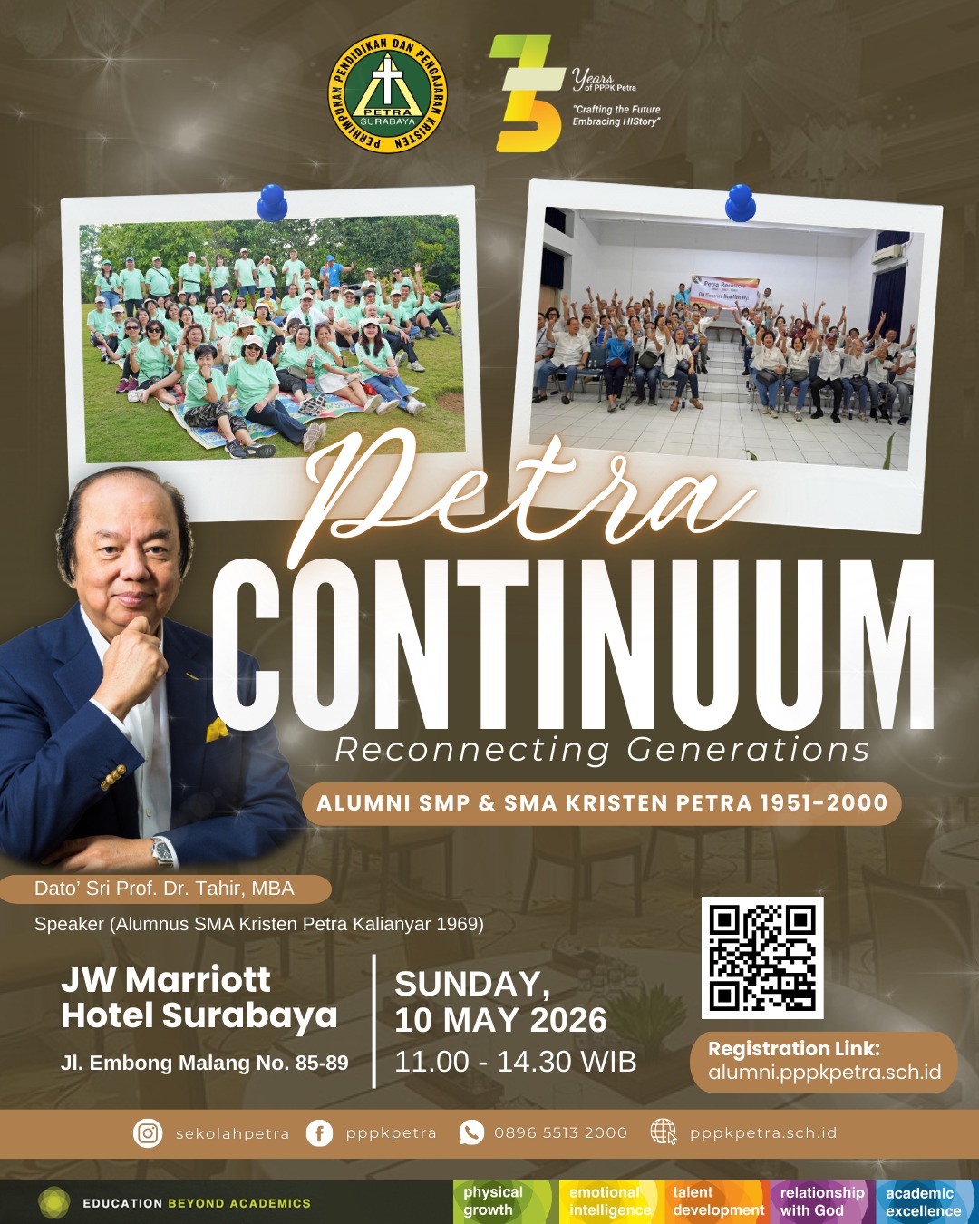 Perubahan di dalam kehidupan manusia terutama di bidang pendidikan memang menjadi tantangan tersendiri. Namun PPPK Petra siap menjawab setiap tantangan yang ada dengan yakin, berjuang dan semangat, serta sinergi yang baik dalam melayani pendidikan lewat sekolah-sekolah yang menjadi naungan PPPK Petra termasuk SMA Kristen Petra 4. Seperti tema yang saat ini sedang digaungkan yaitu “Synergy in Action: Empowering Growth, Embracing Tomorrow with PPPK Petra” memberi spirit tersendiri bagi tenaga pendidik maupun peserta didik untuk bisa bersinergi dan berjuang bersama menciptakan pendidikan yang holistik di tengah perkembangan zaman dan perubahan yang terus terjadi.